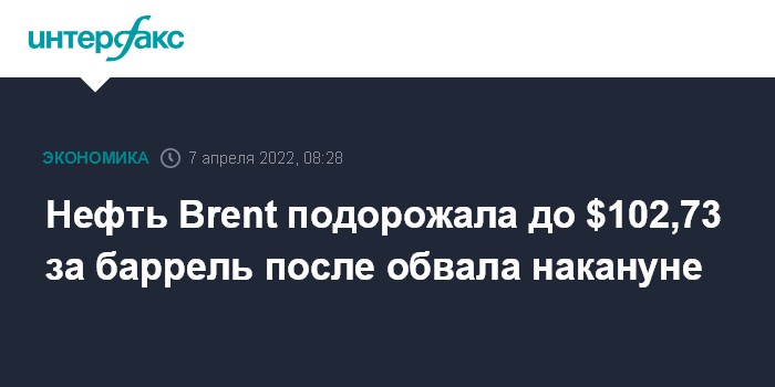Нефть Brent подорожала до $102,73 за баррель после обвала накануне