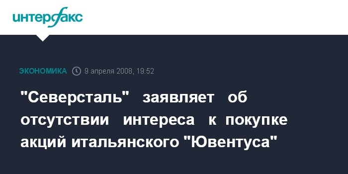 "Северсталь" заявляет об отсутствии интереса к покупке акций итальянского "Ювентуса"