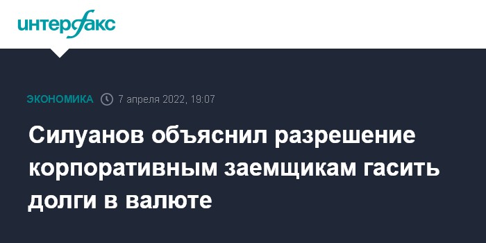 Силуанов объяснил разрешение корпоративным заемщикам гасить долги в валюте