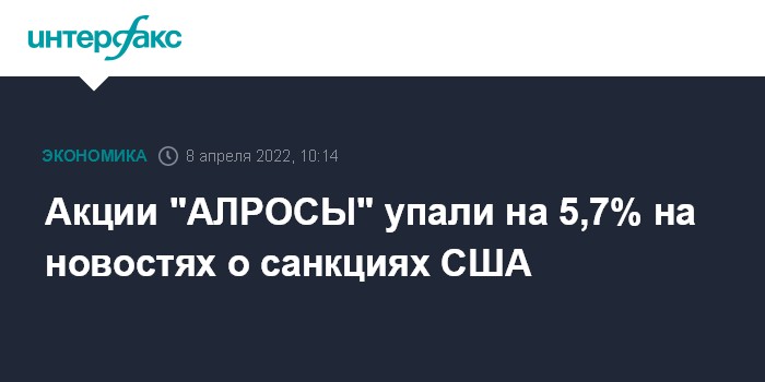 Акции "АЛРОСЫ" упали на 5,7% на новостях о санкциях США