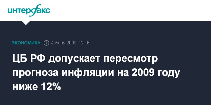 ЦБ РФ допускает пересмотр прогноза инфляции на 2009 году ниже 12%