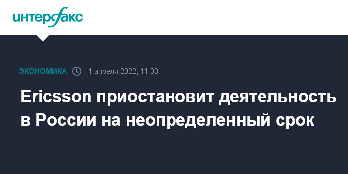 "В конце февраля Ericsson приостановила все поставки клиентам в России. В свете недавних событий и санкций Европейского Союза теперь компания на неопределенный срок приостановит свою деятельность с клиентами в России. Ericsson обсуждает с клиентами и партнерами приостановку бизнеса на неопределенный срок. Приоритетом является обеспечение безопасности и благополучия сотрудников Ericsson в России, и они будут отправлены в оплачиваемый отпуск", - говорится в сообщении.