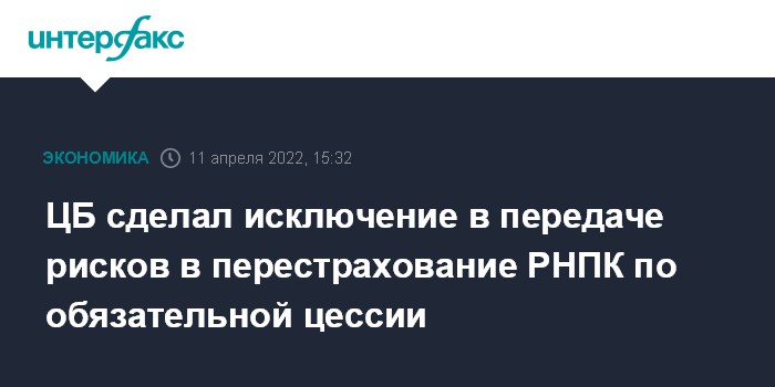 ЦБ сделал исключение в передаче рисков в перестрахование РНПК по обязательной цессии