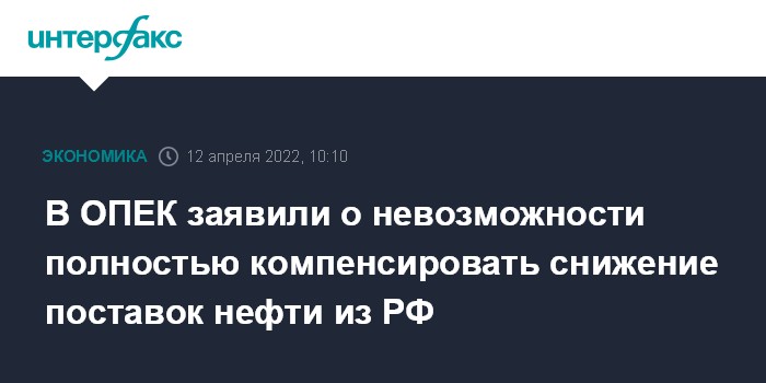 В ОПЕК заявили о невозможности полностью компенсировать снижение поставок нефти из РФ