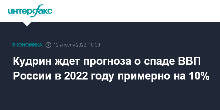 "Я сказал, что у разных официальных органов прогнозы около 10%, ниже есть, а есть выше. Например, снижение на 8% с небольшим или, например, 10% или чуть больше у разных государственных организаций. (...) около 10%, причем от 8% с небольшим до больше, чем 10%", - сказал Кудрин.