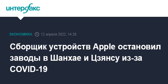 Сборщик устройств Apple остановил заводы в Шанхае и Цзянсу из-за COVID-19