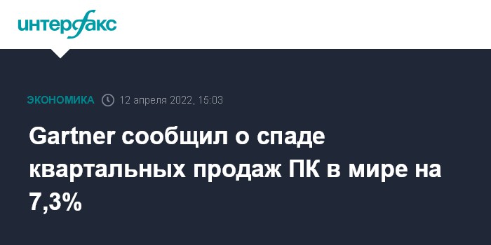 Москва. 12 апреля. INTERFAX.RU - В I квартале 2022 года мировые поставки персональных компьютеров упали в натуральном измерении на 7,3% к январю-марту 2021 года и составили 77,5 млн, свидетельствуют предварительные данные аналитической компании Gartner. IDC недавно сообщила о спаде глобальных продаж ПК за этот же период на 5,1%, до 80,5 млн штук.