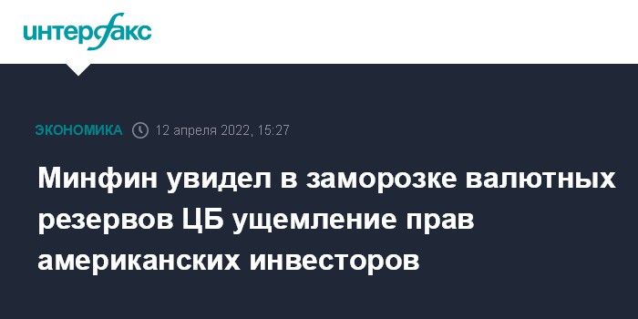 Минфин увидел в заморозке валютных резервов ЦБ ущемление прав американских инвесторов