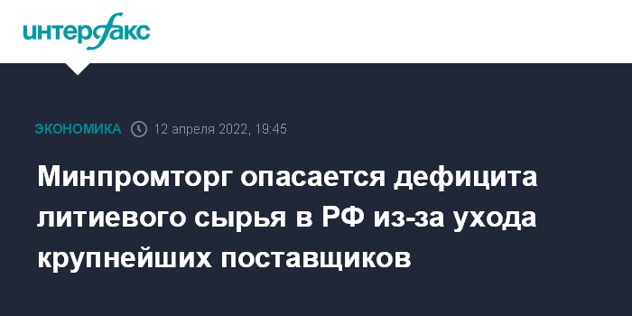 Минпромторг опасается дефицита литиевого сырья в РФ из-за ухода крупнейших поставщиков