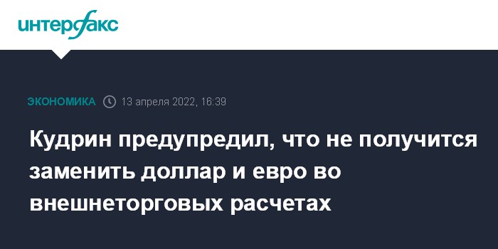 Кудрин предупредил, что не получится заменить доллар и евро во внешнеторговых расчетах