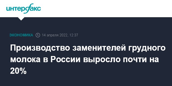 Москва. 14 апреля. INTERFAX.RU - В России в 2021 году было выпущено 32 тысячи тонн ззаменителей грудного молока, это почти на 20% больше, чем в 2020 году, сообщили в Минсельхозе.
