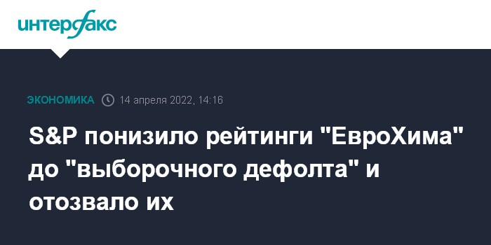 S&P понизило рейтинги "ЕвроХима" до "выборочного дефолта" и отозвало их