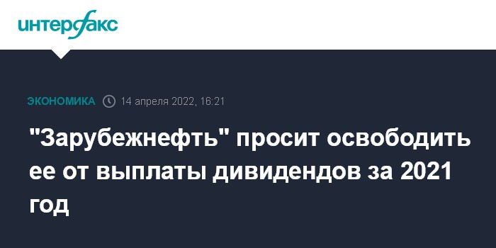 Москва. 14 апреля. INTERFAX.RU - "Зарубежнефть" обратилась в правительство РФ с просьбой освободить компанию от выплаты дивидендов по итогам работы за 2021 год, сохранив капитал для реализации инвестиционной программы, сообщил "Интерфаксу" источник, знакомый с ситуацией.