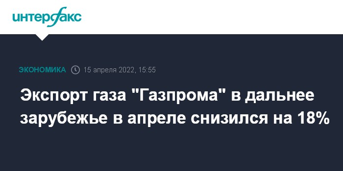 Экспорт газа "Газпрома" в дальнее зарубежье в апреле снизился на 18%