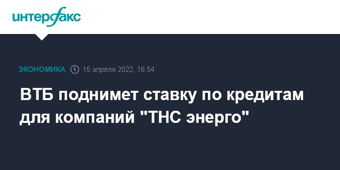 ВТБ поднимет ставку по кредитам для компаний "ТНС энерго"