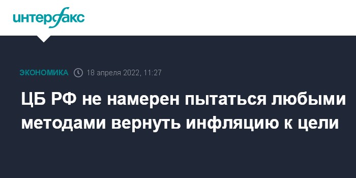 ЦБ РФ не намерен пытаться любыми методами вернуть инфляцию к цели