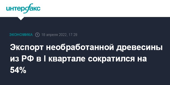Москва. 18 апреля. INTERFAX.RU - Экспорт необработанной древесины из РФ по итогам I квартала 2022 года сократился на 54% на фоне запрета на вывоз "кругляка" ценных пород и составил 1,4 млн куб. м. Об этом сообщил первый заместитель руководителя Федеральной таможенной службы (ФТС) РФ Руслан Давыдов.