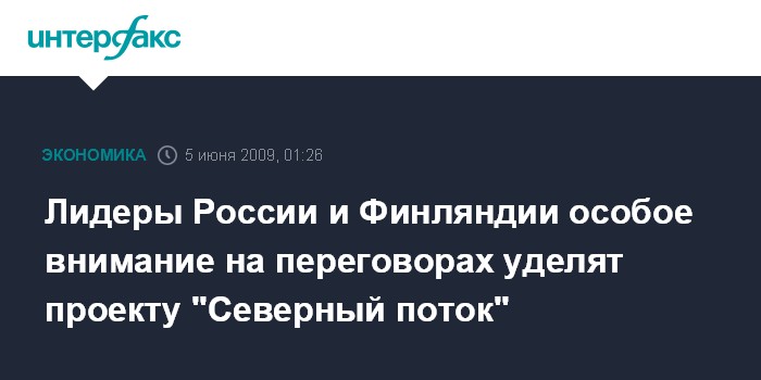 Лидеры России и Финляндии особое внимание на переговорах уделят проекту "Северный поток"