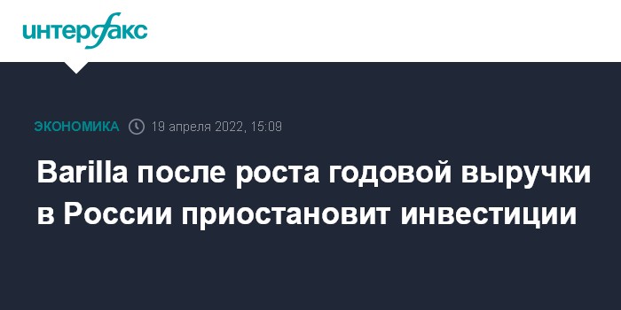 Barilla после роста годовой выручки в России приостановит инвестиции