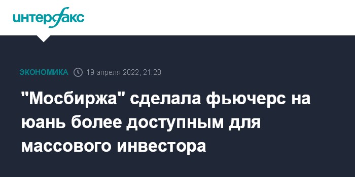 Москва. 19 апреля. INTERFAX.RU - "Московская биржа" объявила, что с 21 апреля изменила параметры фьючерсного контракта на валютную пару "китайский юань - российский рубль".