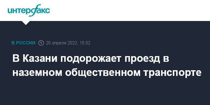 Москва. 20 апреля. INTERFAX.RU - В Казани билет на проезд в наземном общественном транспорте подорожает на один рубль, сообщил Госкомитет Татарстана по тарифам.