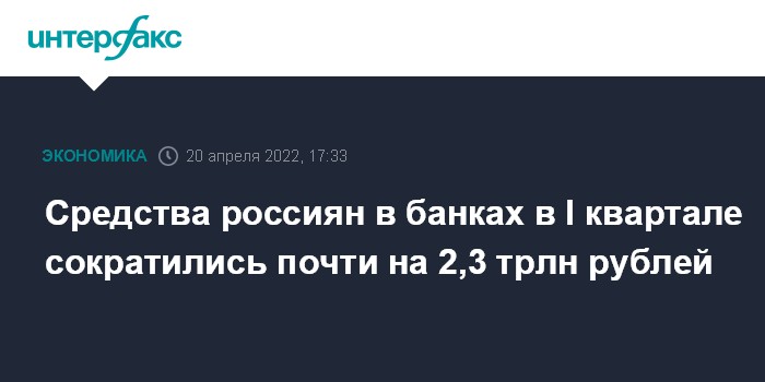 Средства россиян в банках в I квартале сократились почти на 2,3 трлн рублей