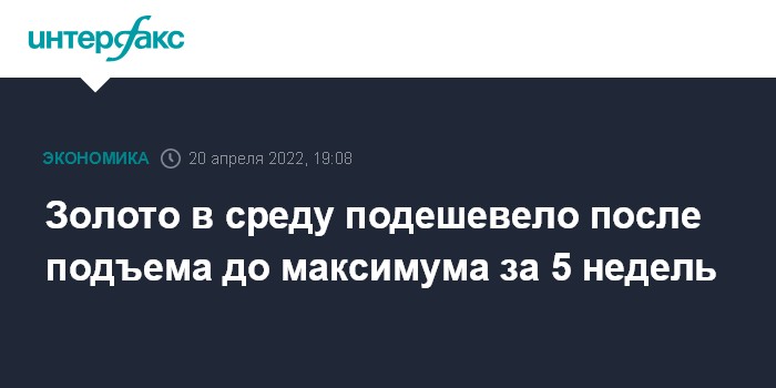 Москва. 20 апреля. INTERFAX.RU - Цены на золото снижаются в ходе торгов в среду, отойдя от максимальных значений за пять недель.