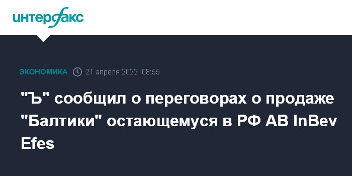 Москва. 21 апреля. INTERFAX.RU - Датская Carlsberg Group, которая решила уйти из России, может продать пивоваренную компанию "Балтика" совместному предприятию бельгийской AB InBev и турецкой Anadolu Efes - AB InBev Efes, пишет "Коммерсантъ" со ссылкой на свои источники, которые слышали о таких переговорах.