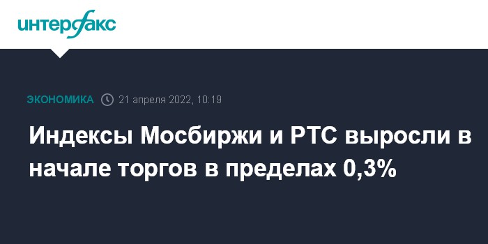 Москва. 21 апреля. INTERFAX.RU - Торги на российском рынке акций в четверг начались с восходящего коррекционного импульса на фоне улучшения внешней сырьевой конъюнктуры, однако покупатели сохраняют осторожность из-за санкционного давления на Россию.