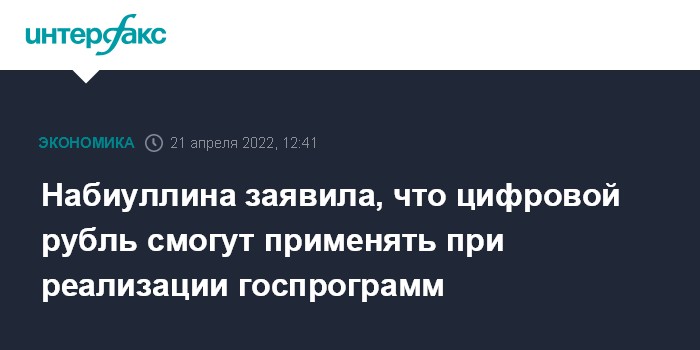 Москва. 21 апреля. INTERFAX.RU - Цифровой рубль сможет применяться при реализации государственных программ, это позволит более эффективно отслеживать использование средств, заявила председатель ЦБ Эльвира Набиуллина в Госдуме.
