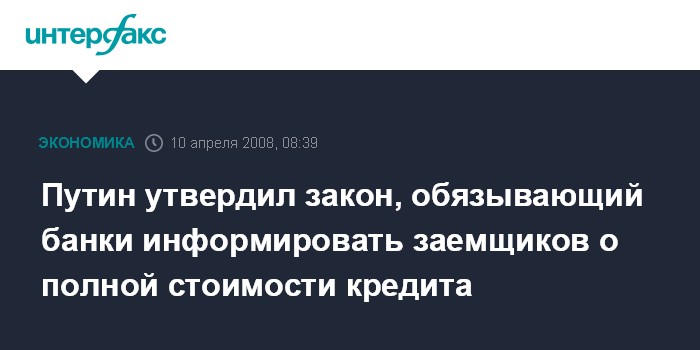 Путин утвердил закон, обязывающий банки информировать заемщиков о полной стоимости кредита
