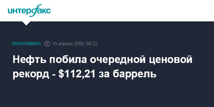Нефть побила очередной ценовой рекорд - $112,21 за баррель