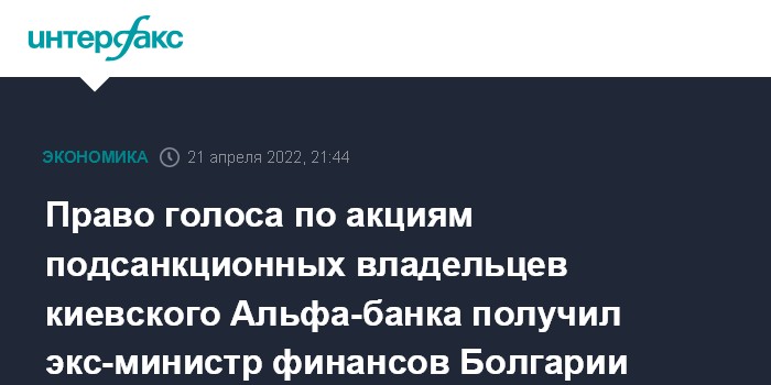 Право голоса по акциям подсанкционных владельцев киевского Альфа-банка получил экс-министр финансов Болгарии