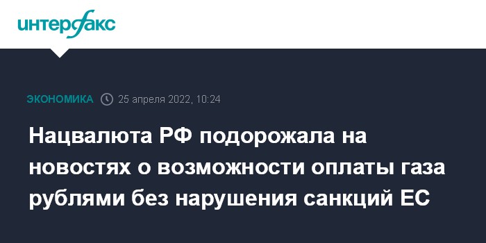 Нацвалюта РФ подорожала на новостях о возможности оплаты газа рублями без нарушения санкций ЕС