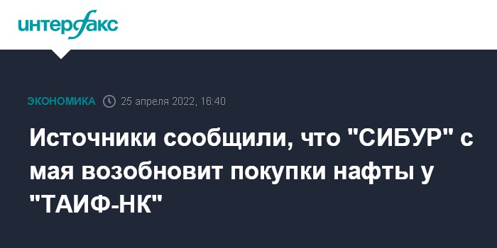 Источники сообщили, что "СИБУР" с мая возобновит покупки нафты у "ТАИФ-НК"