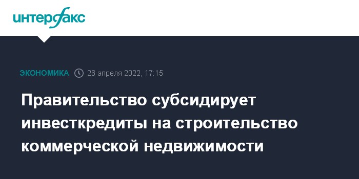 Правительство субсидирует инвесткредиты на строительство коммерческой недвижимости
