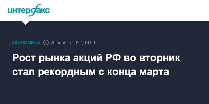Рост рынка акций РФ во вторник стал рекордным с конца марта