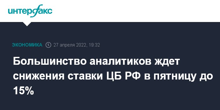 Большинство аналитиков ждет снижения ставки ЦБ РФ в пятницу до 15%