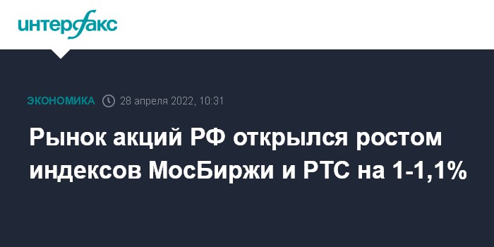 Рынок акций РФ открылся ростом индексов МосБиржи и РТС на 1-1,1%