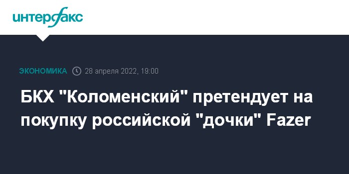БКХ "Коломенский" претендует на покупку российской "дочки" Fazer