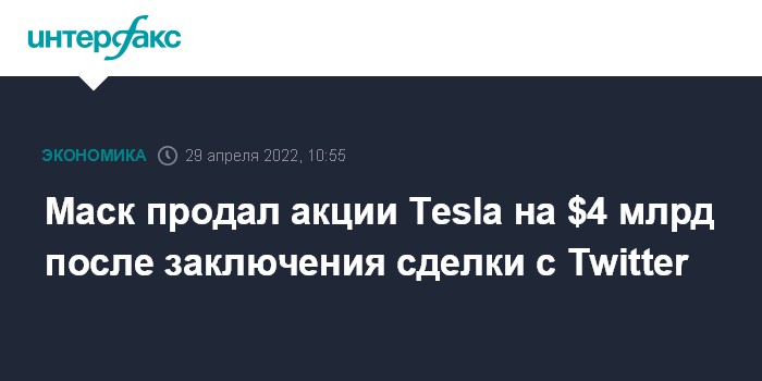 Маск продал акции Tesla на $4 млрд после заключения сделки с Twitter