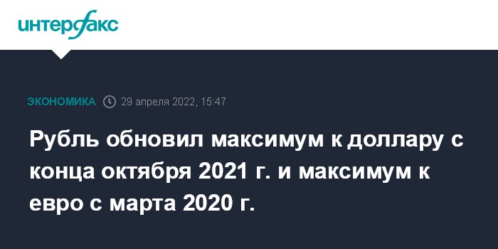 Рубль обновил максимум к доллару с конца октября 2021 г. и максимум к евро с марта 2020 г.