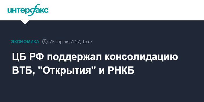 ЦБ РФ поддержал консолидацию ВТБ, "Открытия" и РНКБ