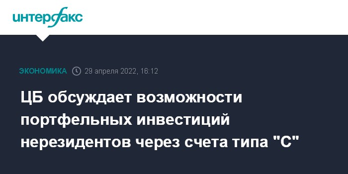 ЦБ обсуждает возможности портфельных инвестиций нерезидентов через счета типа "С"