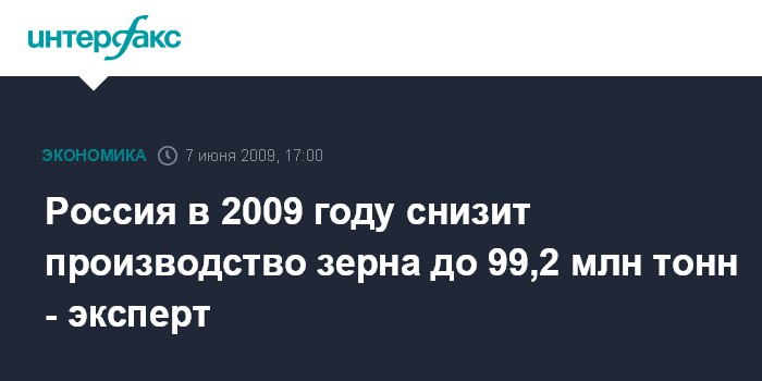 Россия в 2009 году снизит производство зерна до 99,2 млн тонн - эксперт