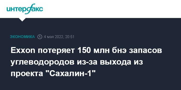 Ранее в СМИ сообщалось, что Exxon Neftegas Ltd. (оператор проекта "Сахалин-1") объявила форс-мажор и начала сокращать добычу нефти из-за осложнения деятельности и возникновения проблем со сбытом продукции на фоне санкций.