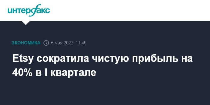 Москва. 5 мая. INTERFAX.RU - В первом квартале 2022 года американская онлайн-площадка для торговли Etsy Inc. cократила чистую прибыль на 40% в годовом выражении, но увеличила выручку, следует из ее отчета.