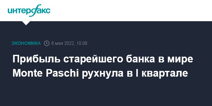 Москва. 6 мая. INTERFAX.RU - Старейший банк в мире Banca Monte dei Paschi di Siena SpA резко сократил чистую прибыль в первом квартале 2022 года.