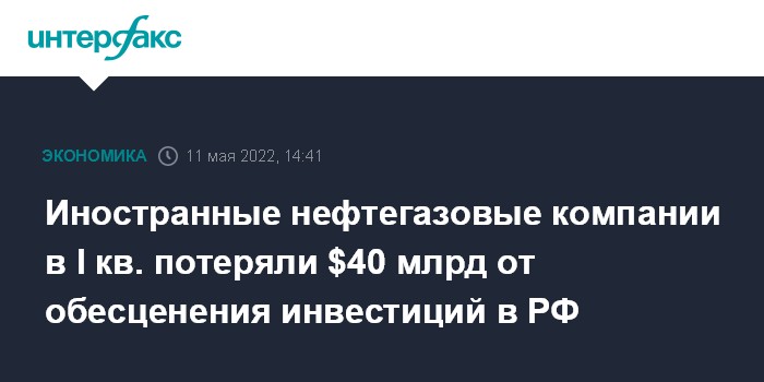 Иностранные нефтегазовые компании в I кв. потеряли $40 млрд от обесценения инвестиций в РФ