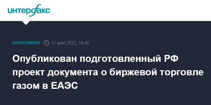 Москва. 11 мая. INTERFAX.RU - Евразийская экономическая комиссия (ЕЭК) опубликовала проект документа, регламентирующего порядок осуществления биржевых торгов газом в государствах Евразийского экономического союза (ЕАЭС) в рамках формирования общего рынка газа союза.